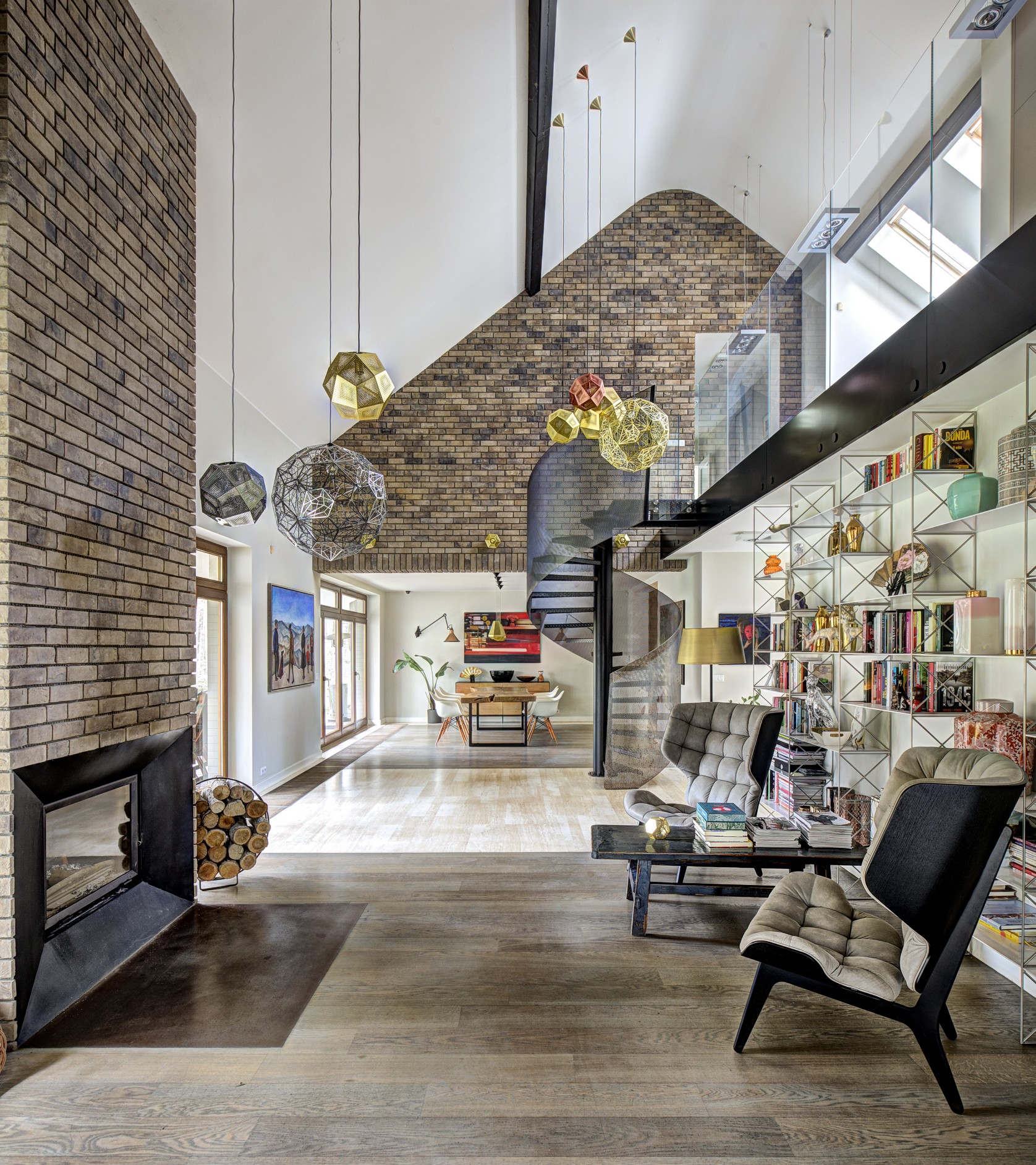 Największe zalety rezydencji to przede wszystkim otwarte przestrzenie, jasne dobrze doświetlone wnętrza, duże okna od strony zachodniej wychodzące na zalesiony ogród i dające uczucie bliskości z naturą, oraz oszałamiające wrażenia, które wywołuje otwarta przestrzeń nad salonem widziana z poziomu parteru. Koncepcja estetyczna budynku to prostota, natura i elegancja. Wnętrza zaaranżowane są w stylu łączącym elementy z naturalnego drewna i kamienia z odważnymi akcentami stylu industrialnego.